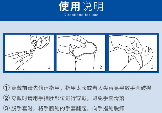 结构组成和型号: 本产品由天然橡胶胶乳制造而成。有粉型号粉末采用符合ISO10993要求的淀粉。产品经环氧乙烷灭菌,无菌供应。 根据手套的表面型式可分四类:有粉光面、无粉光面、有粉麻面、无粉麻面。 适用范围:用于戴在医生手上或手指上对患者病情进行检查或触检,也可用于处理受污染的医疗材料。 注意事项、警示以及提示 1、本品已经环氧乙烷灭菌,灭菌有效期为两年,灭菌日期见包装标识。 2、包装破损,严禁使用。 3、本品仅限一次性使用,用后销毁。
